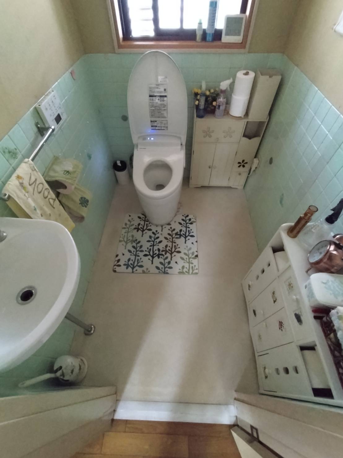 大理石調のクッションフロアーに張替えて、全体が明るくなり清潔感のあるトイレに仕上がりました。