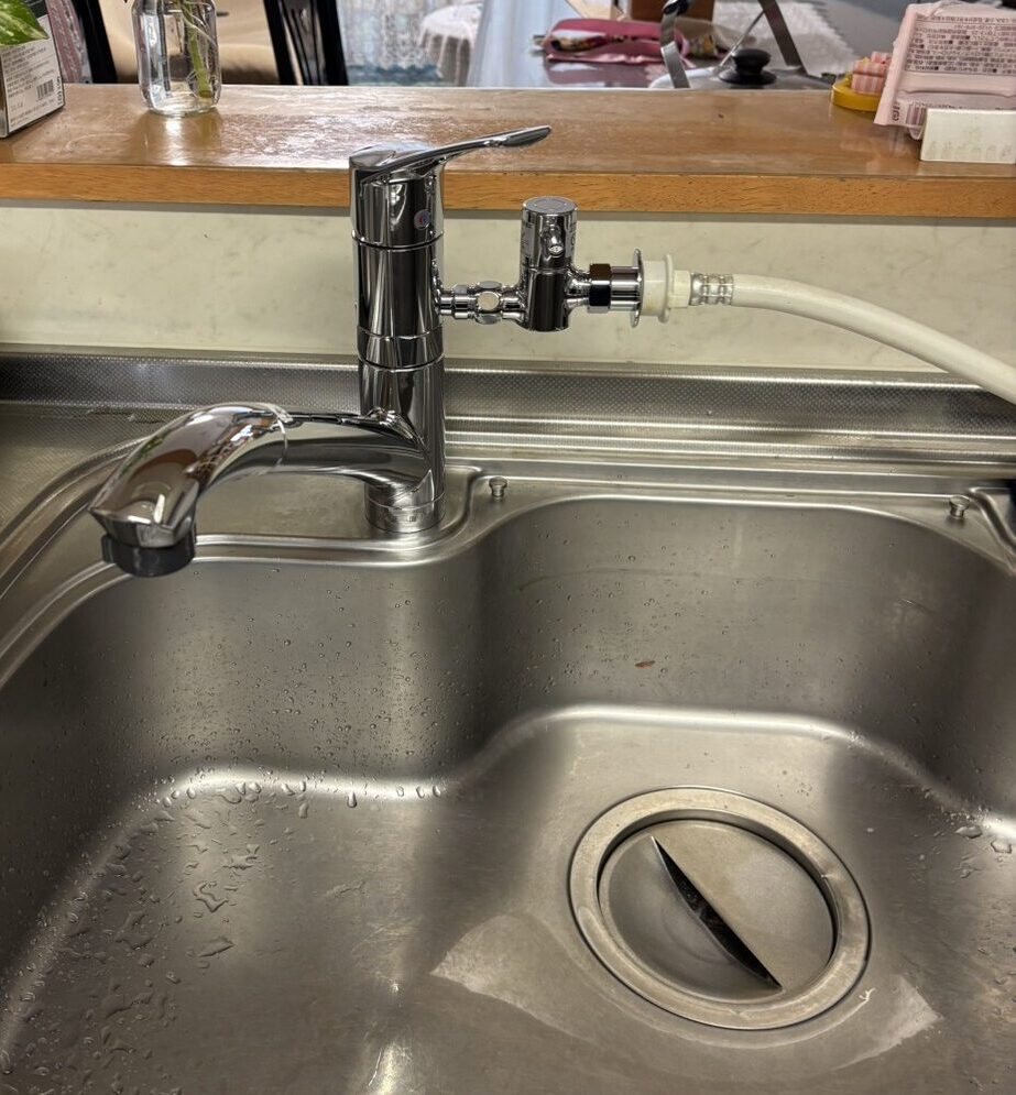 リフォーム概要 工事地域 八幡西区 工事箇所 キッチン 工期 1時間半 費用 6.8万円 Before&After Comment! MYM製キッチン蛇口のシャワーホースからの水漏れで、ご依頼ありました。 部品供給不可でしたので、同等品のKVK製の蛇口を選定し、お取替えいたしました。 据置型の食器洗い乾燥機につなげる分岐水栓と、シャワーヘッドのホースが伸びる蛇口の選定で、既存蛇口と同じようにご使用いただけるようになっています。