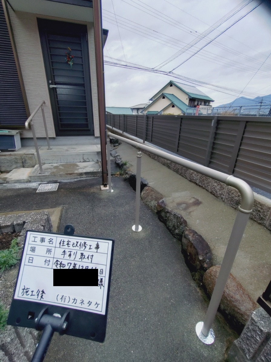 リフォーム概要 工事地域 八幡西区 工事箇所 屋外 工期 4時間 費用 Before&After Comment! 勝手口から駐車場まで安全に移動できるよう、介護保険で手すりを取り付けました。 介助者の負担も軽減でき、転倒を予防できるようになりました。